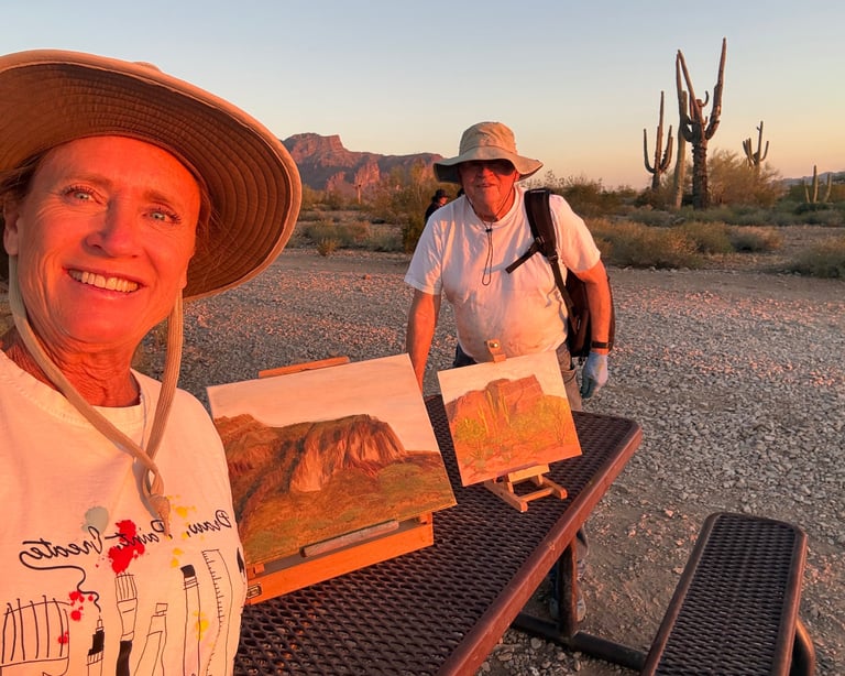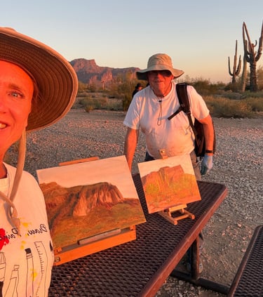 Tonight I had the chance to go plein air painting in the desert with my dad. Watching the light hit the mountains, setting up our easels, and trying to capture the moment before the sun disappeared.